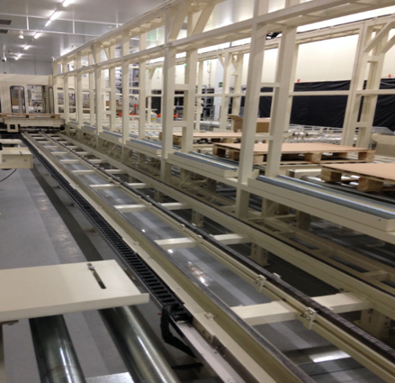 自动拆分木栈板输出,自动拆分纸板放木栈板上,输送到主线体,包装好的产品通过XYZ三轴自动机械臂码放到栈板上,码放数量完成,自动输送到后段线