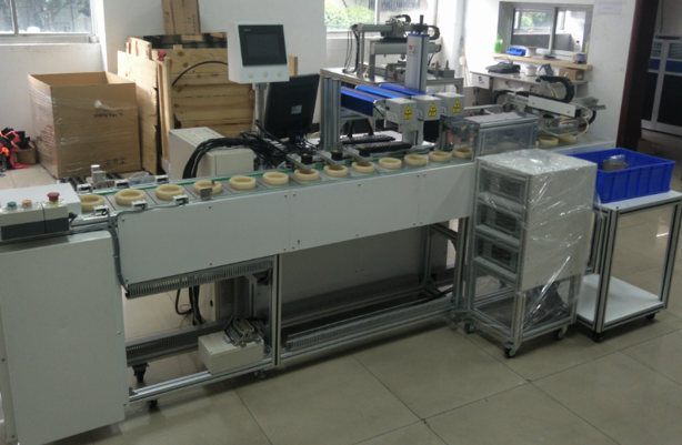 圆灯上料,自动导正对位,自动旋转调整角度定位,自动激光刻字,自动检测产品功率电流参数,自动下料。